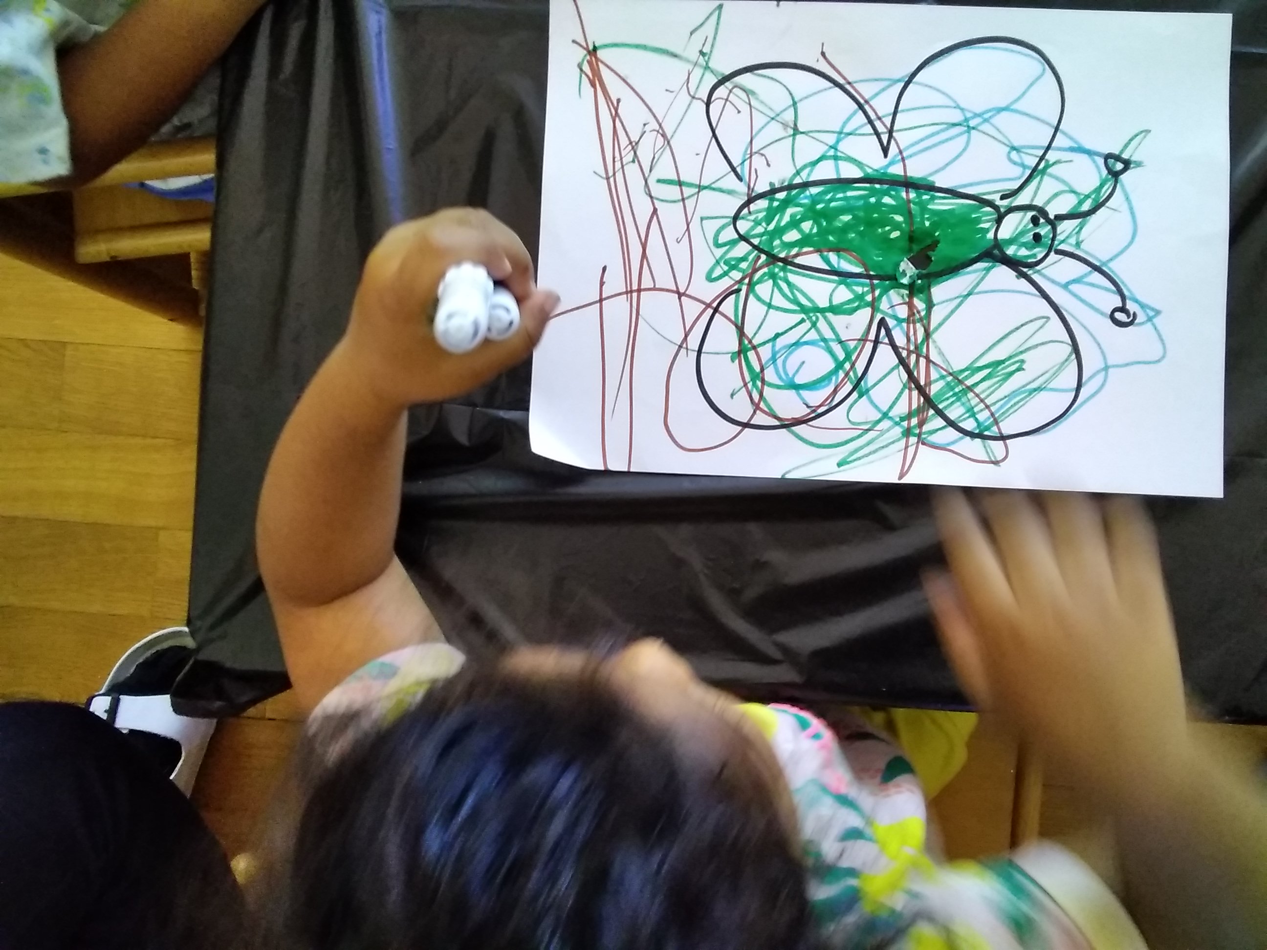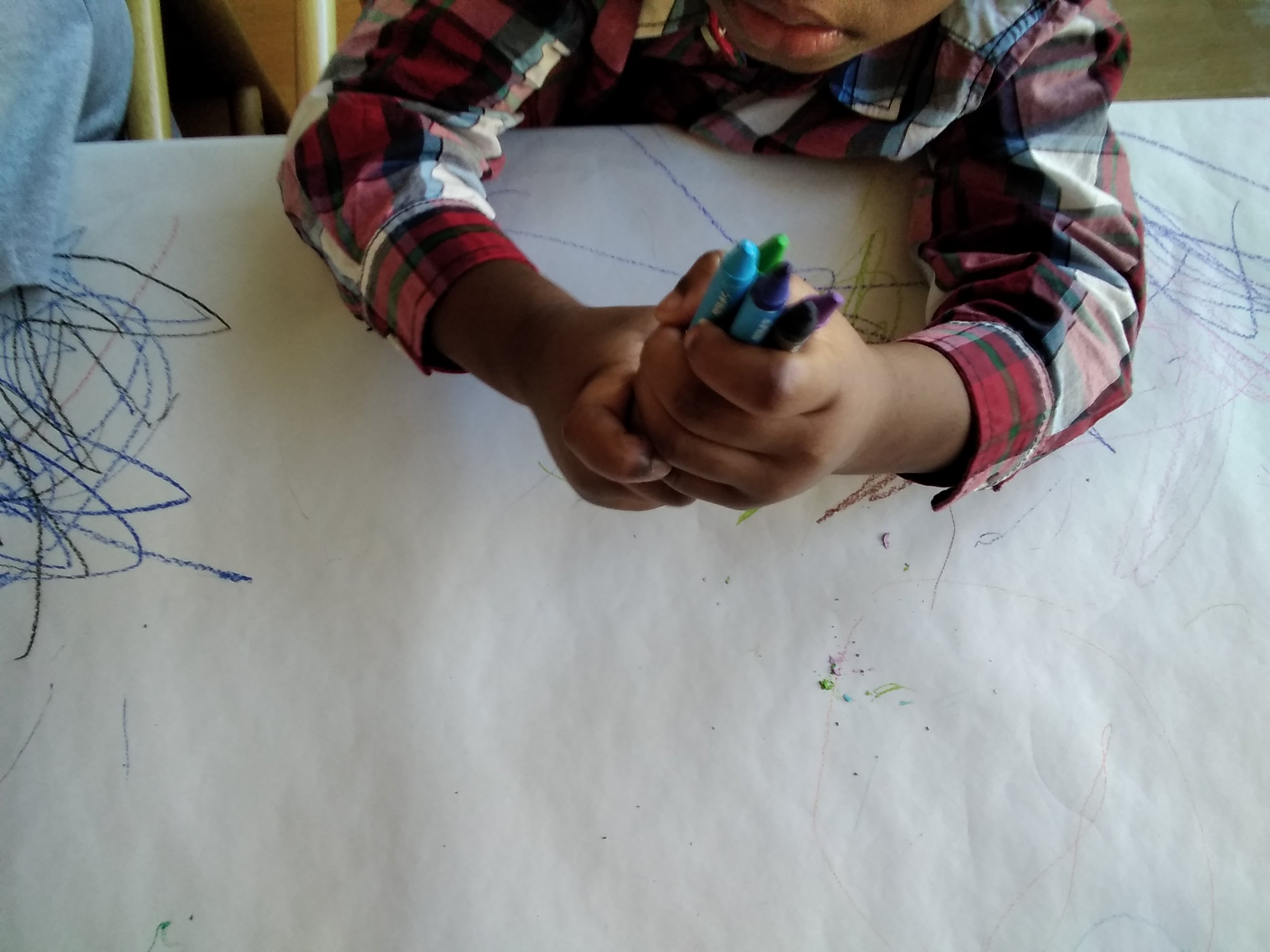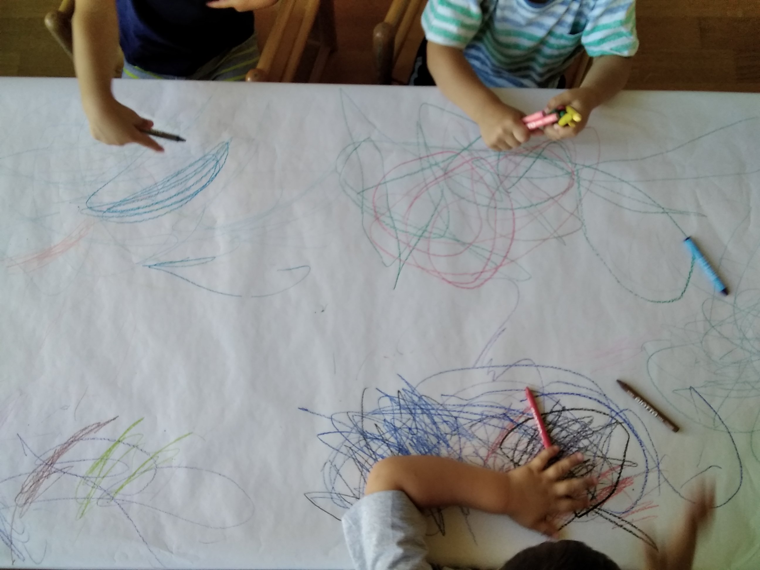 Strappaincolla, espressione grafica con pastelli a cera, movimento all’aperto.