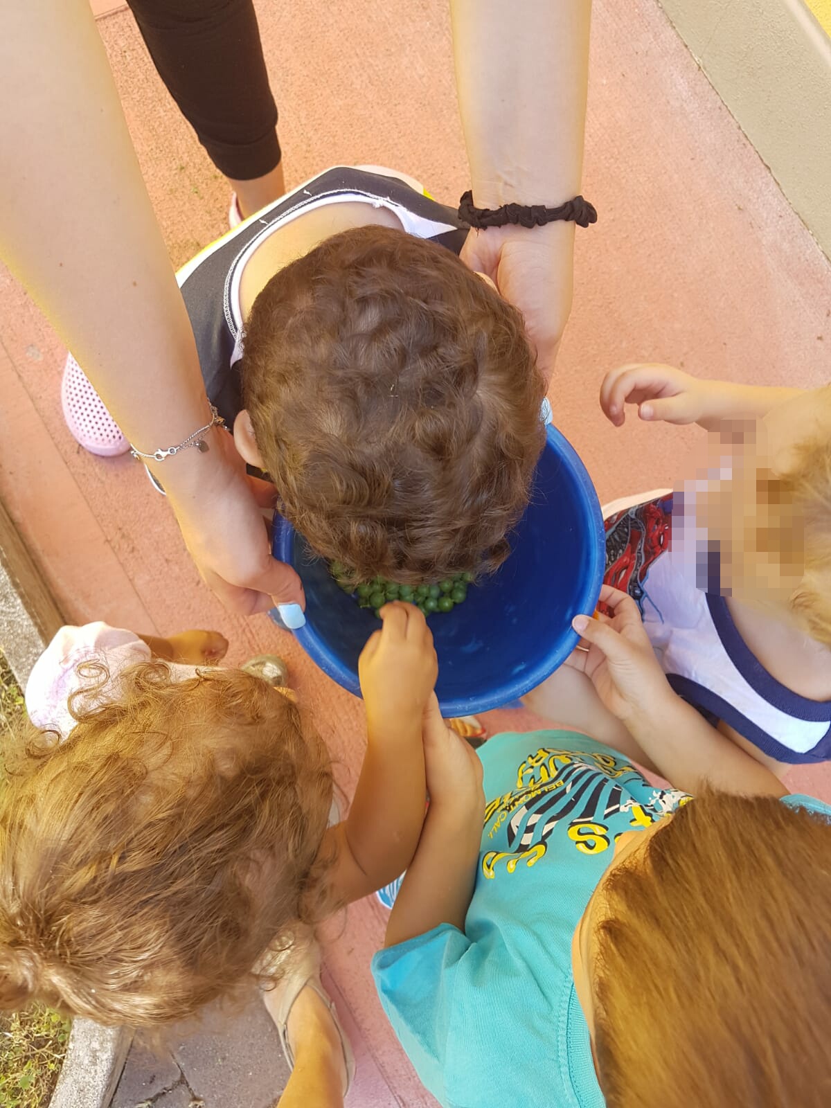Oggi il nostro gruppo dei blu ci siamo divertiti ad esplorare il giardino e raccogliere i frutti. Abbiamo poi colorato con i gessetti.