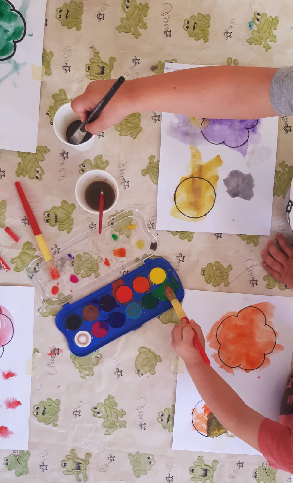 I Verdi fanno i fiori. Che bello usare i pennelli e gli acquerelli! Abbiamo dipinto tanti fiorellini con tutti i colori!