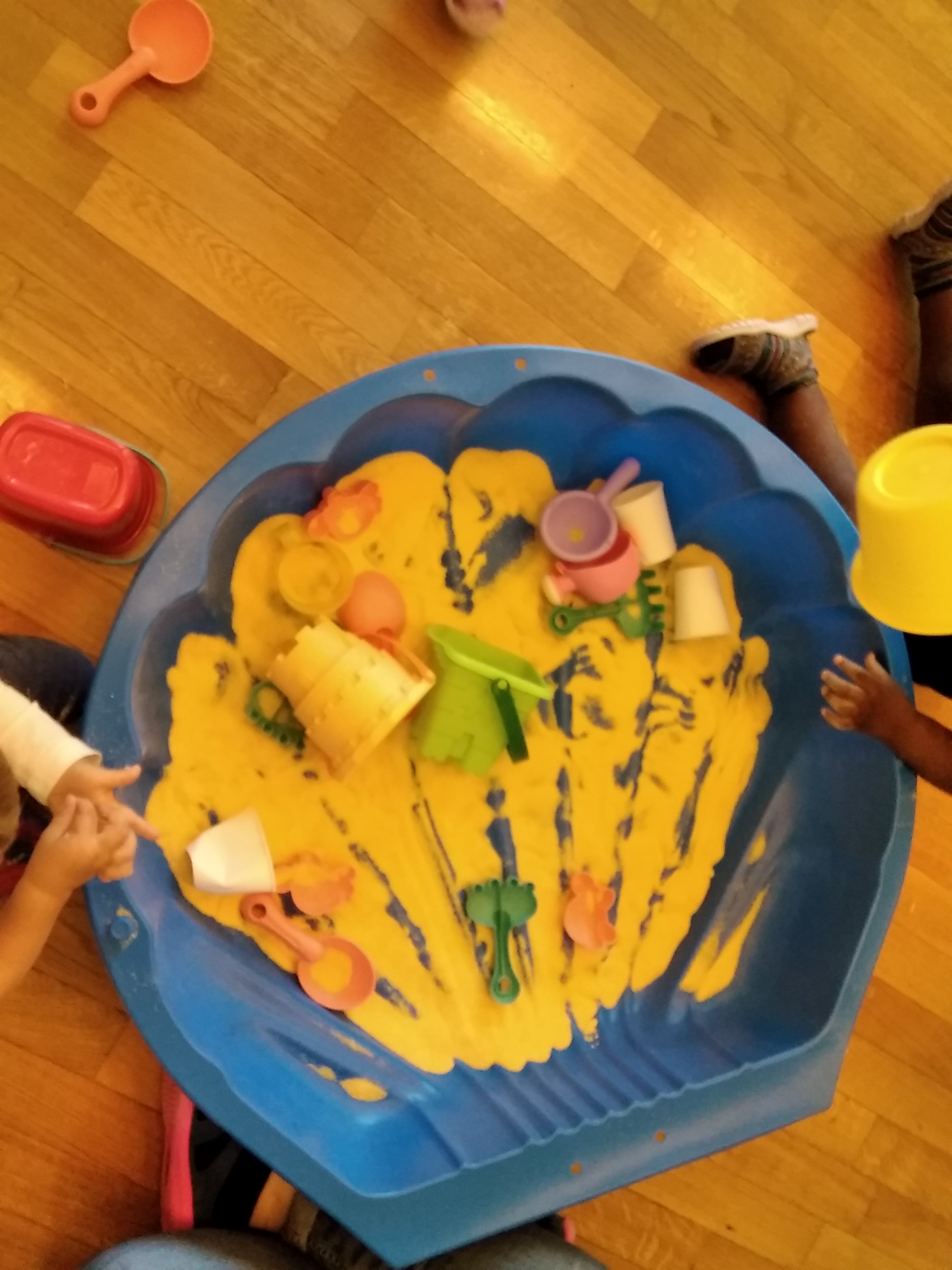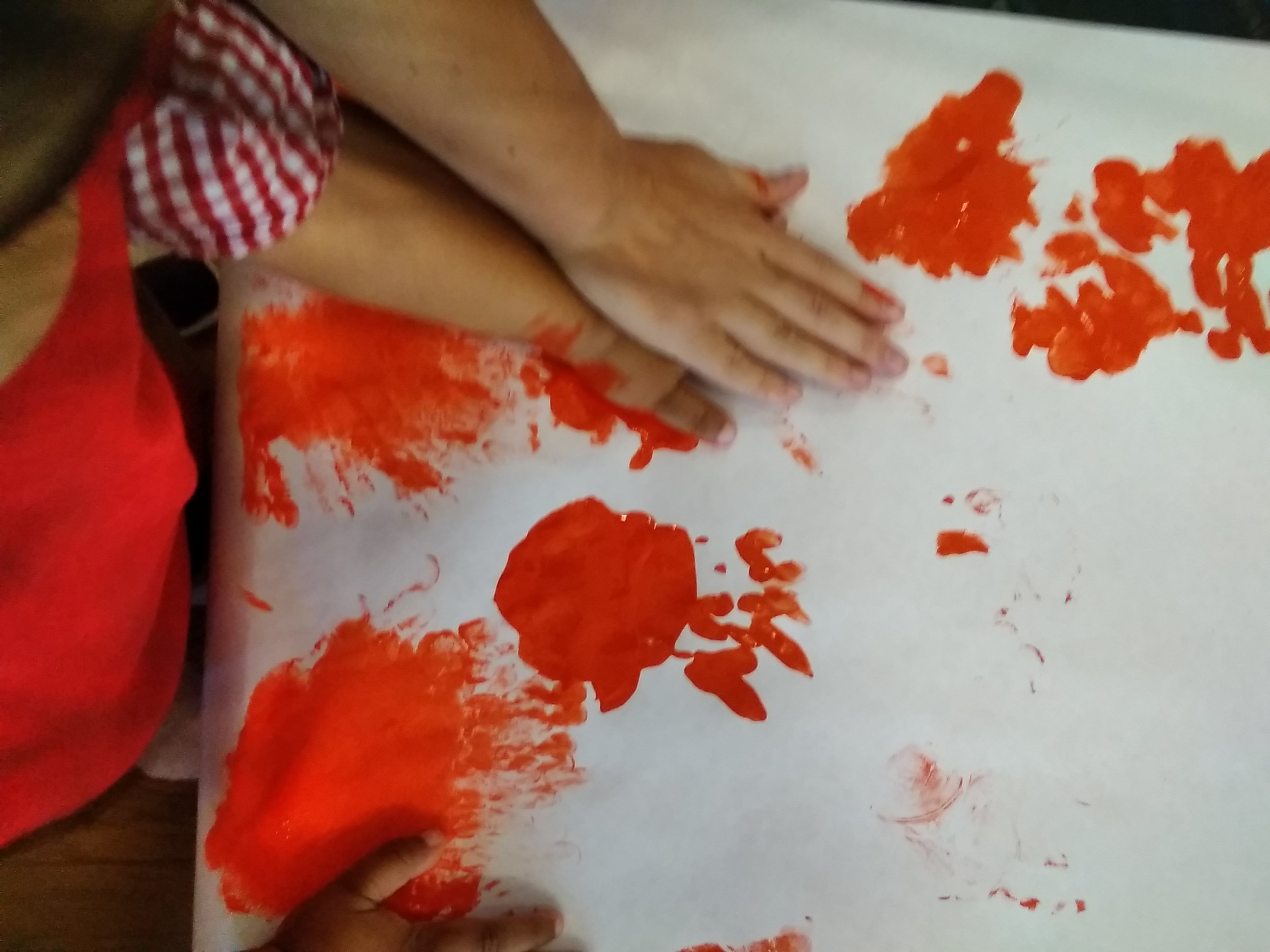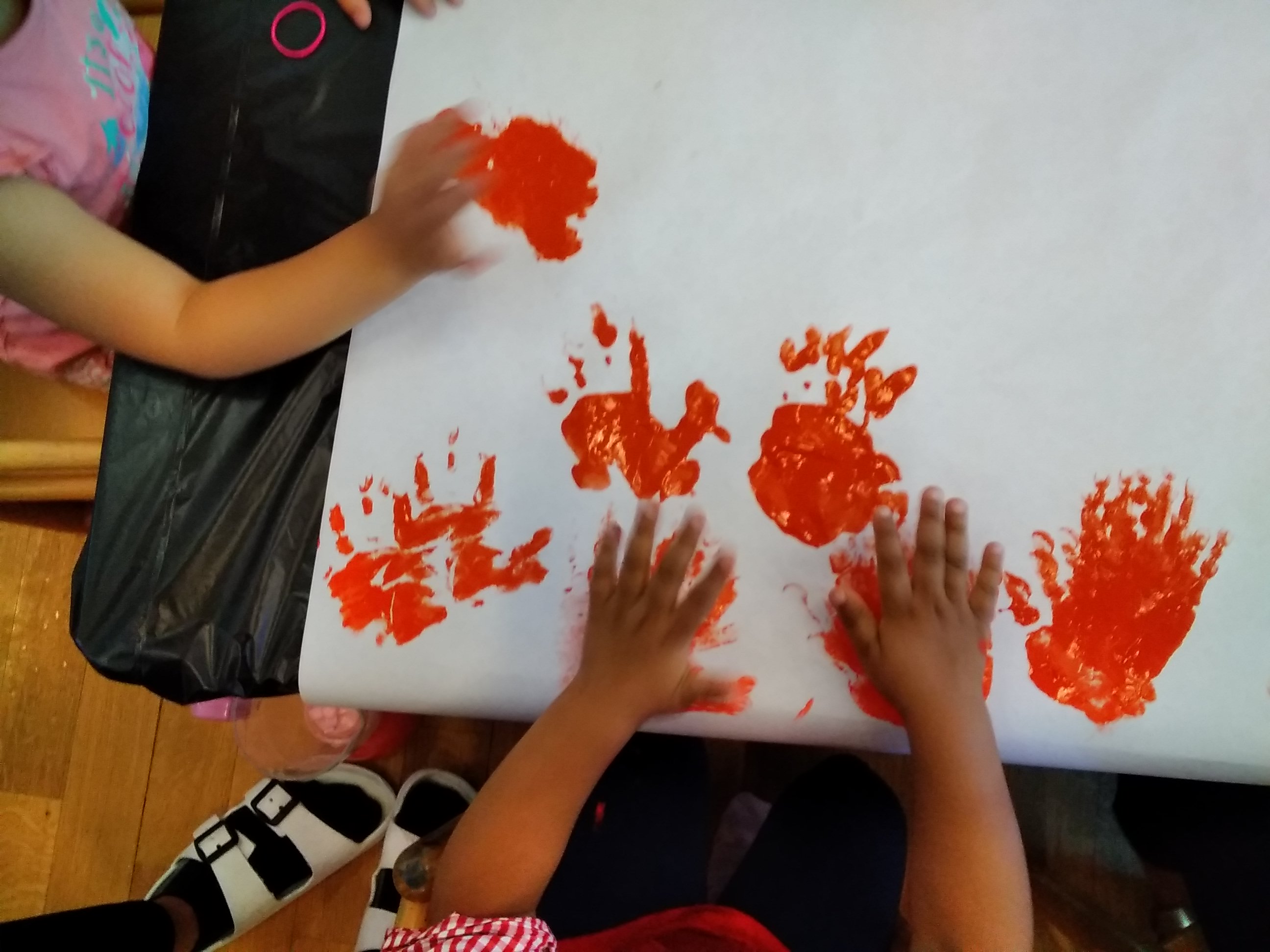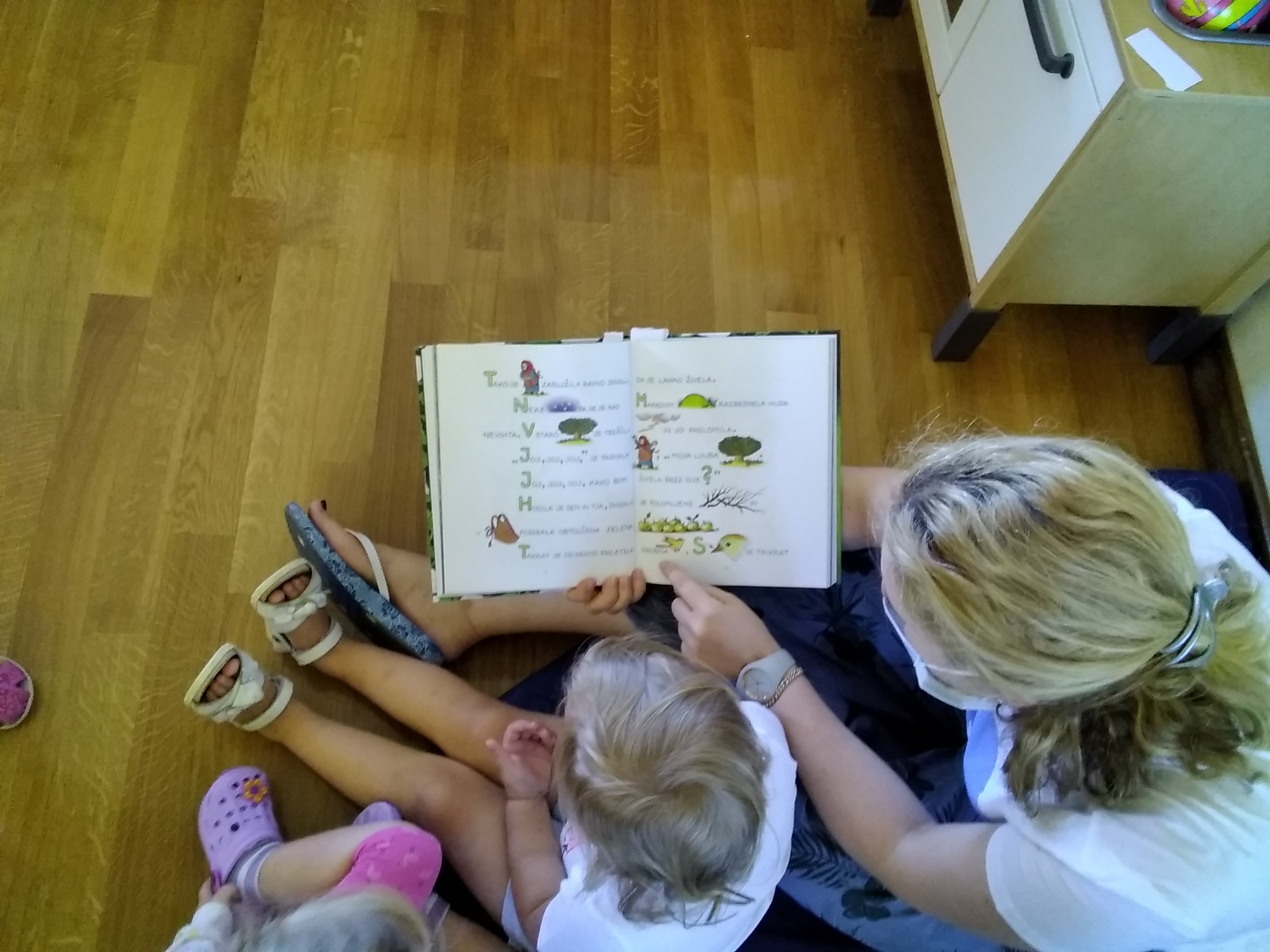 Eccoci qui, oggi tantissime attività gioco simbolico, pittura a dita, manipolazione fine, letture in sloveno, scoperta della natura.