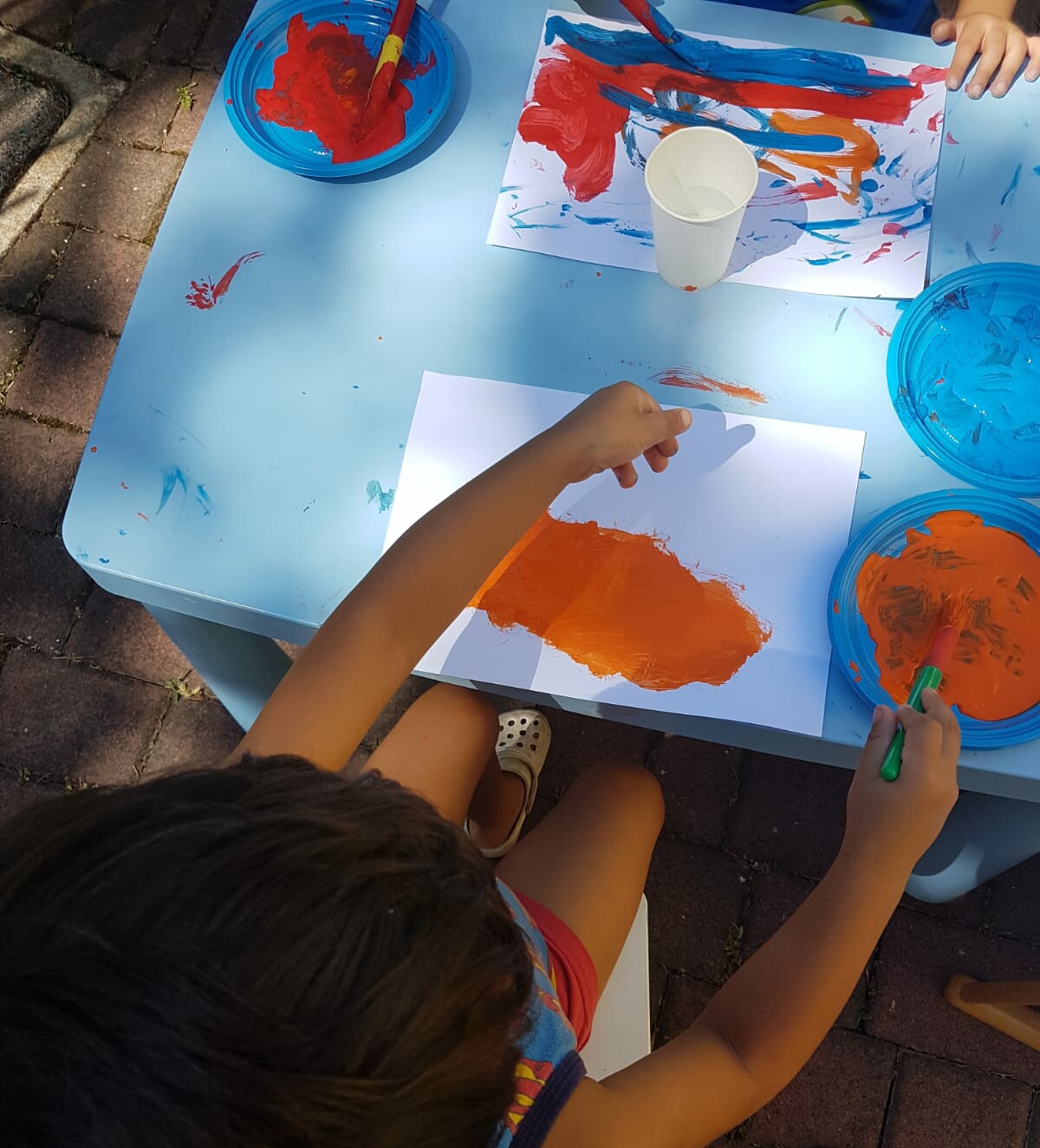 Quanti pesciolini colorati! Oggi il gruppo dei blu ha dipinto con le tempere. Hanno fatto dei bellissimi pesciolini e poi dei disegni liberi con i pennelli.