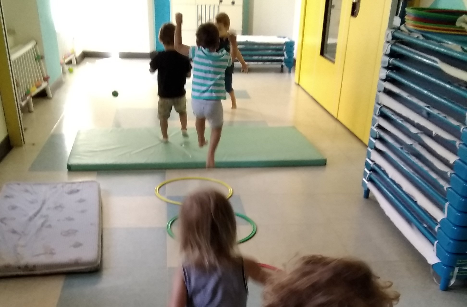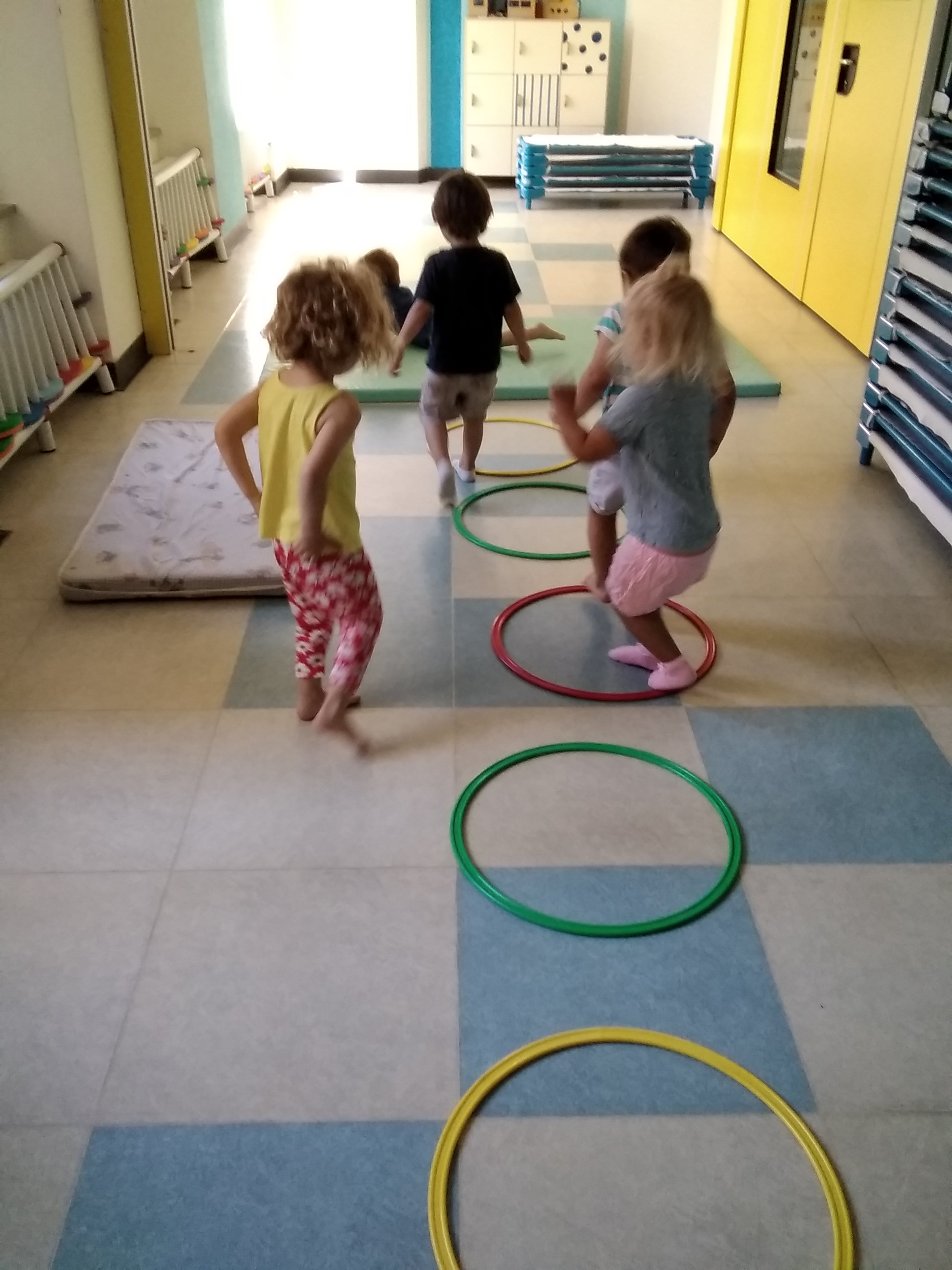 Che bello fare i salti come i conigli! Oggi il gruppo dei gialli ha fatto psicomotricità, ha usato i cerchi ed i materassi per fare ginnastica! Che divertimento.