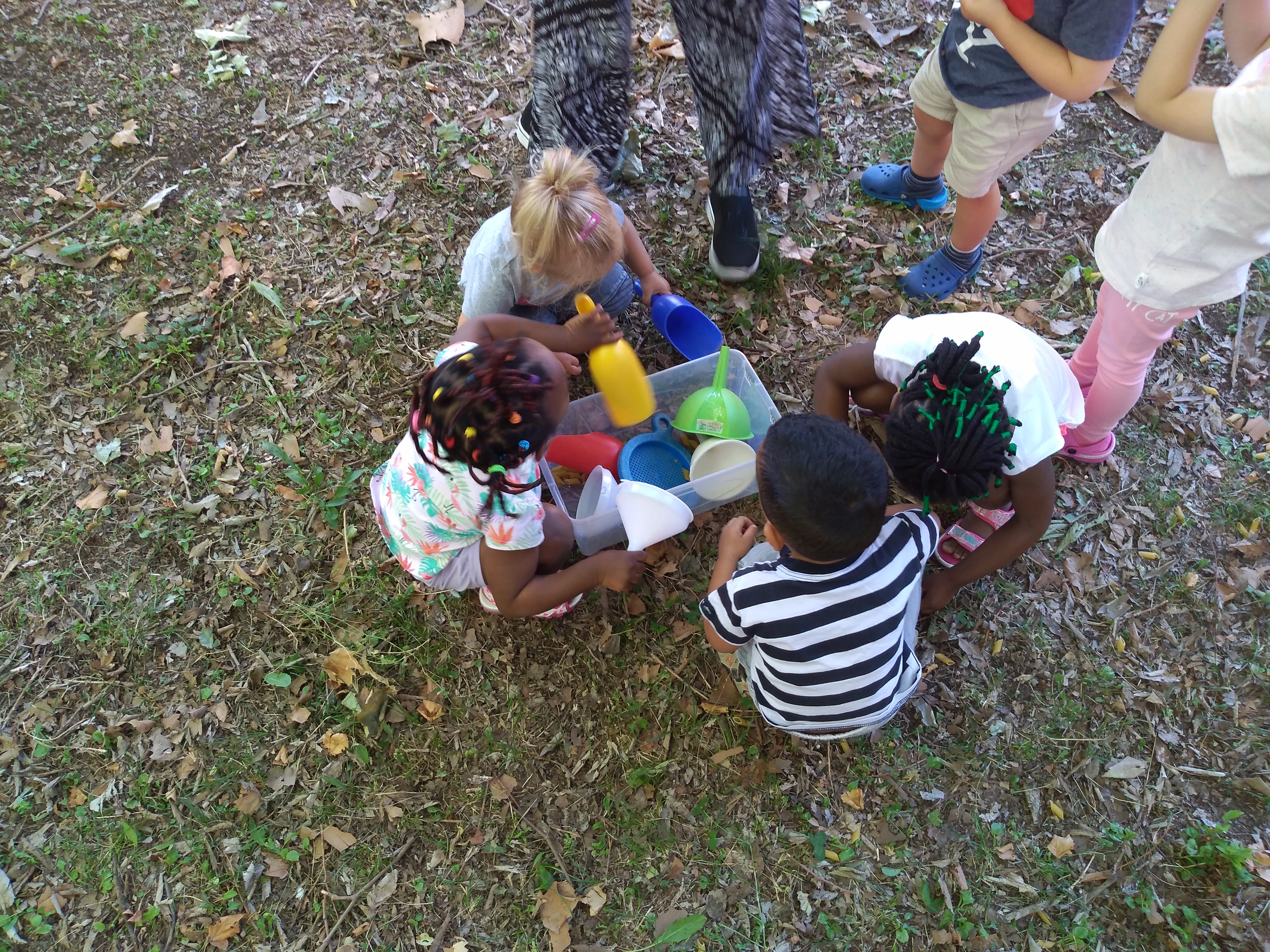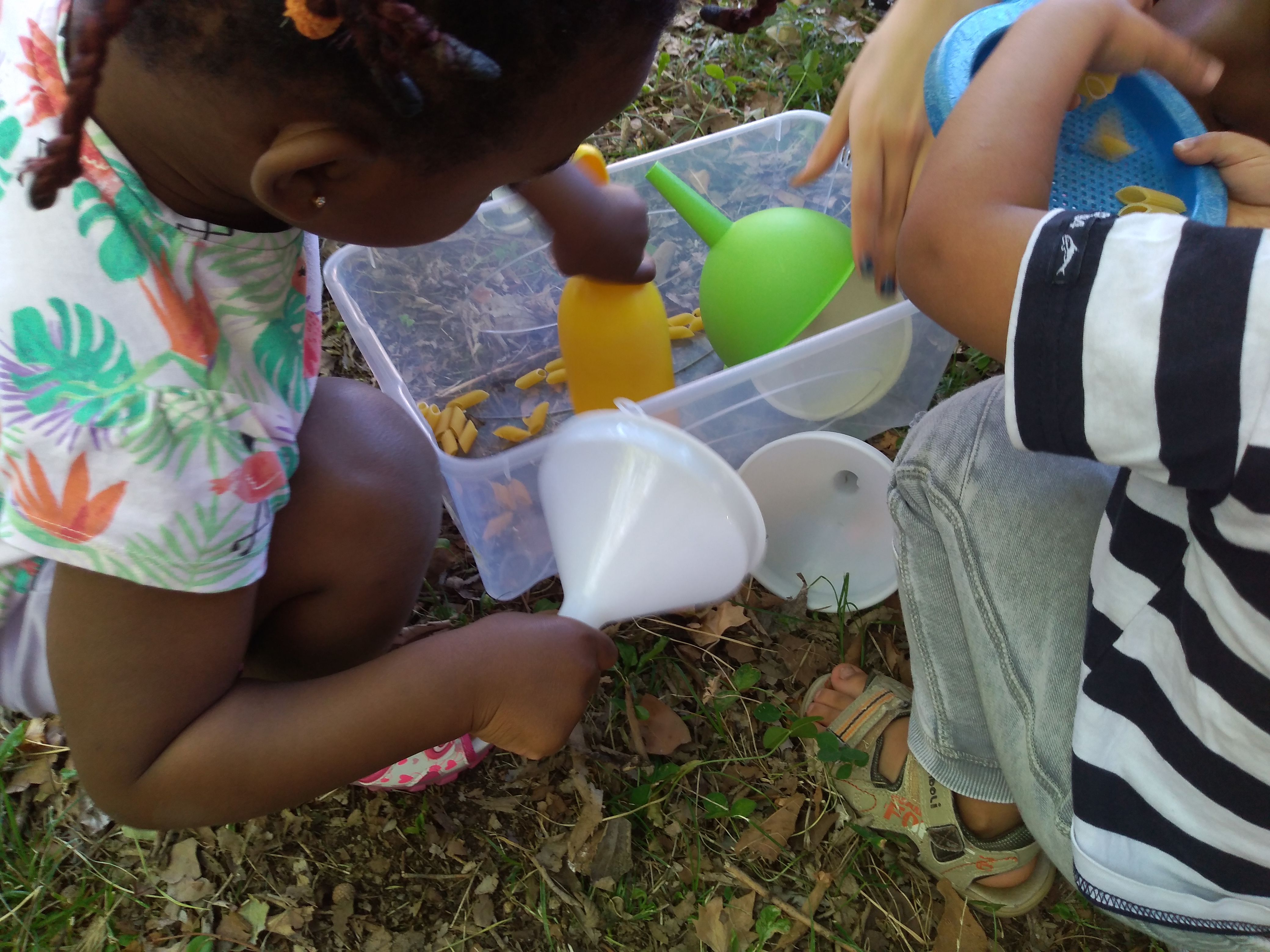 Le nostre attività all’aperto; Musica e ballo, il gioco dei travasi e giochi con la palla.