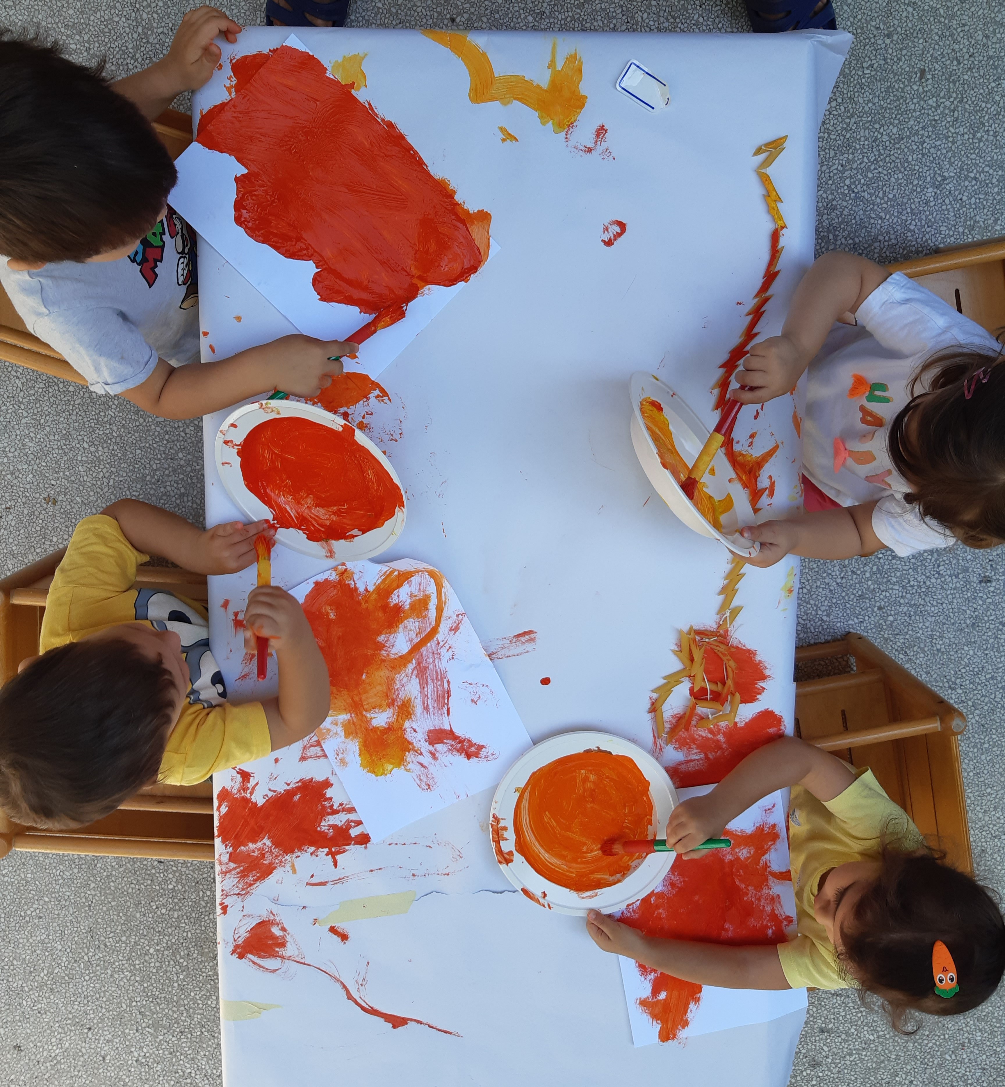 E i bambini del gruppo delle fragole si divertono a usare questo colore e a colorare tutto anche la pasta per delle belle collane colorate.