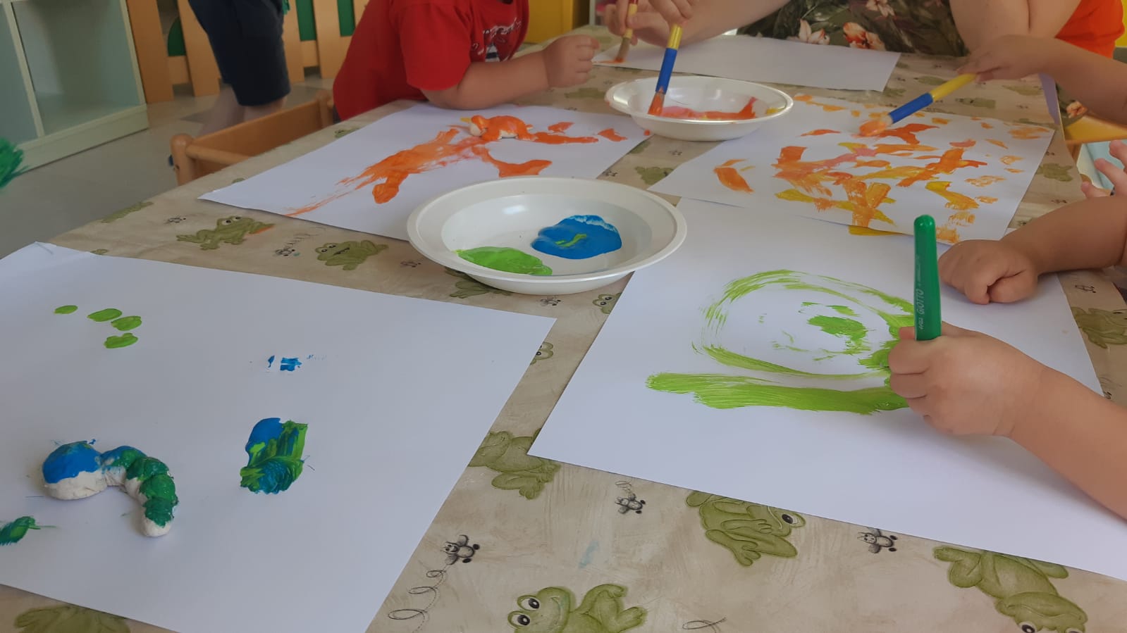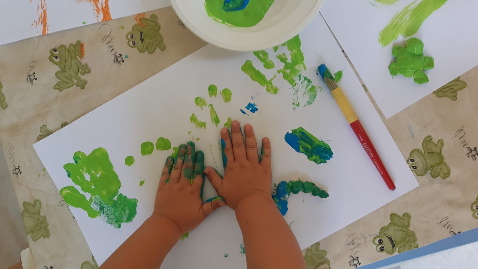 Quanto ci piace sporcarci… Il gruppo verde oggi ha usato le tempere per fare tanti disegni, ma la cosa più bella è dipingersi le mani e lasciare le impronte.
