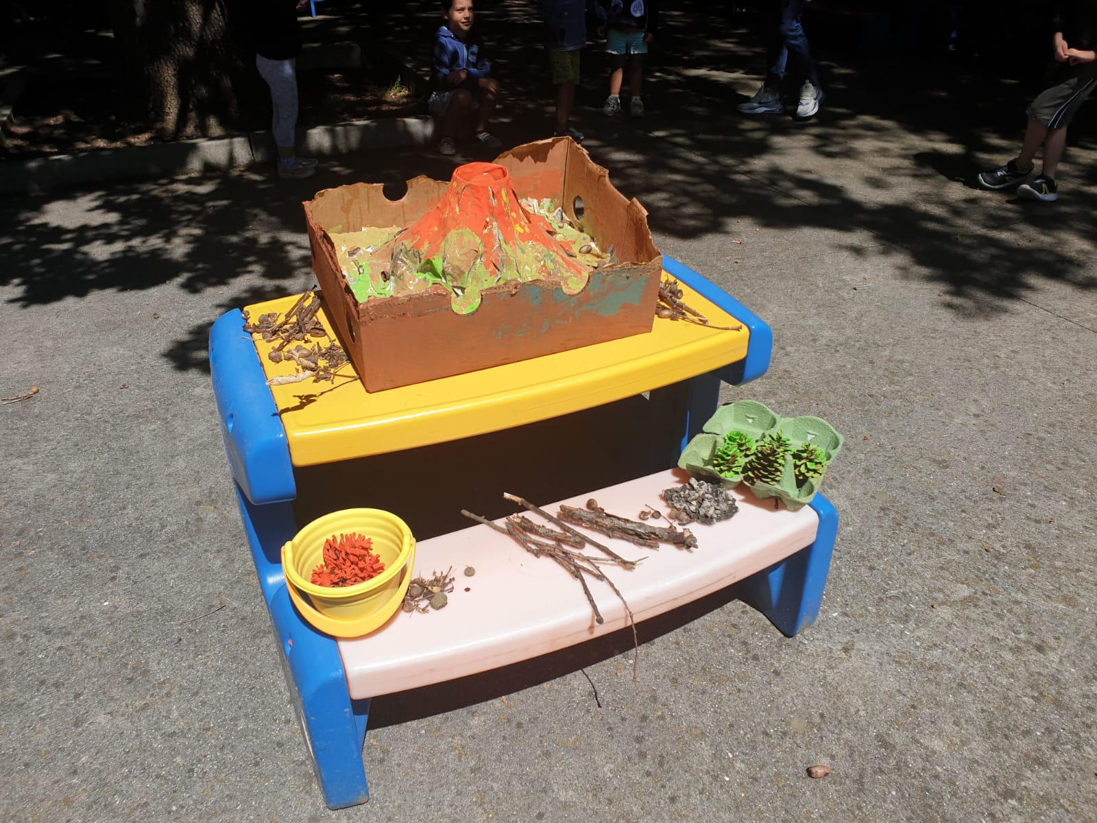 Il programma prevedeva un’avventurosa caccia al tesoro nel parco e infine l’eruzione del vulcano che abbiamo costruito insieme in questi giorni.