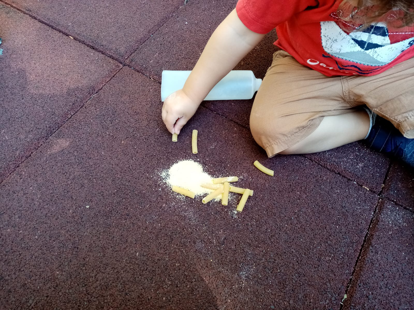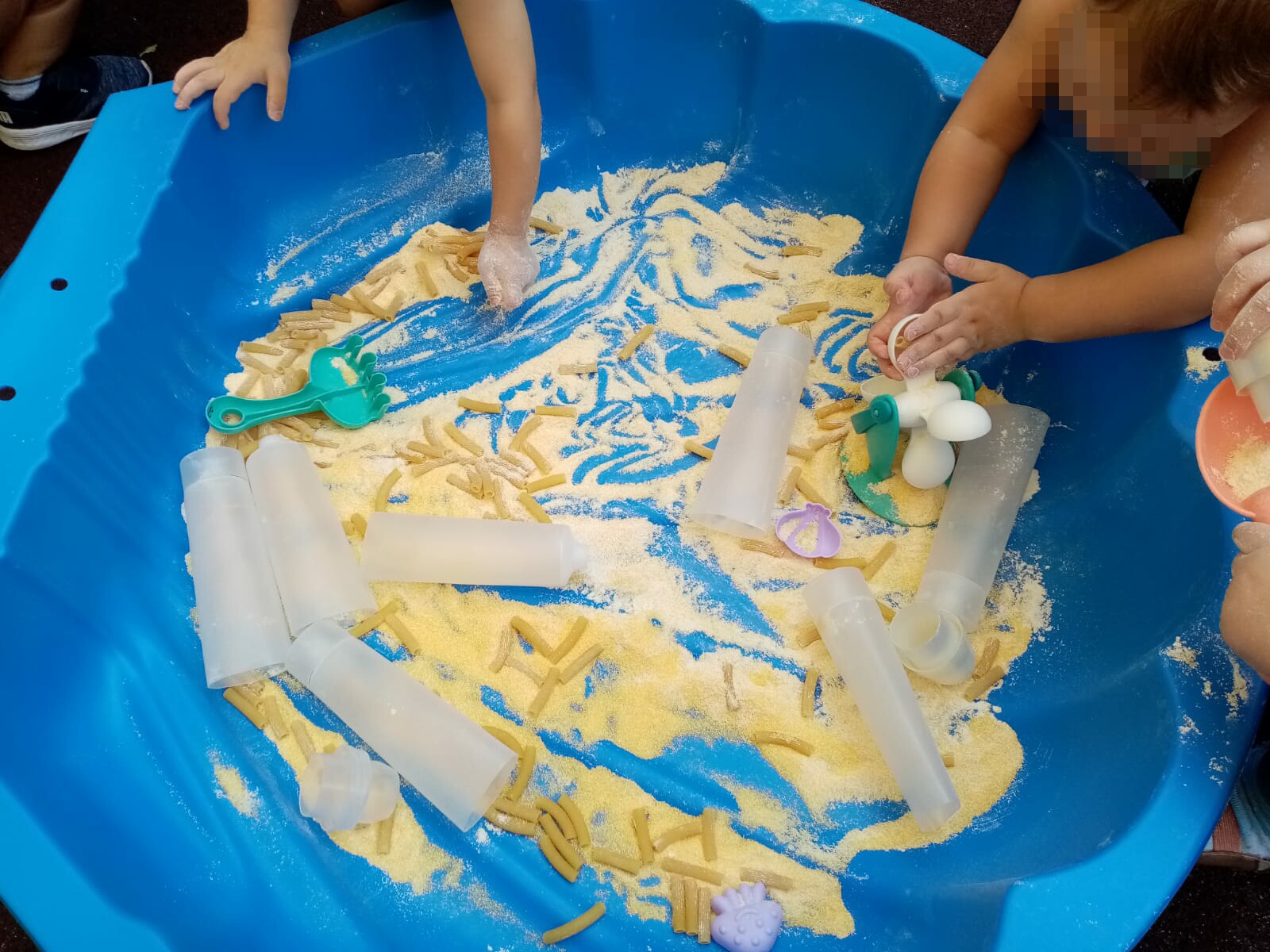 Polentoni… e invece no! Anche il gruppo dei verdi ha giocato tantissimo in terrazza facendo travasi con la polenta e la pasta.