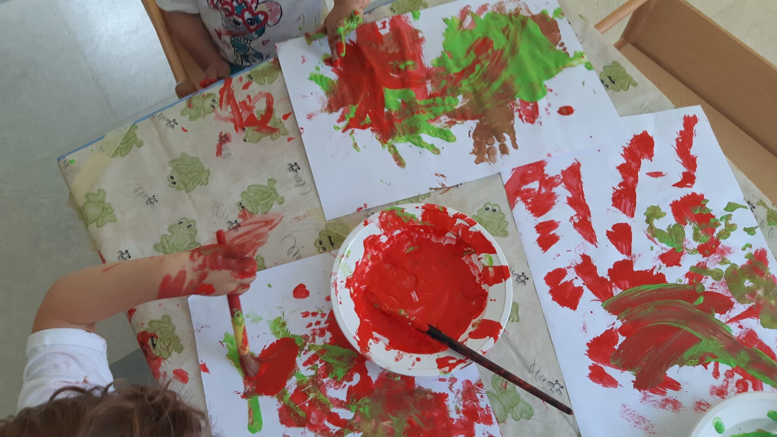 Frutta a colori. I bimbi del gruppo dei verdi oggi ha colorato la frutta, che belle le angurie e le fragole! Ma poi non si può resistere a dipingersi le mani e lasciare le impronte sui fogli…