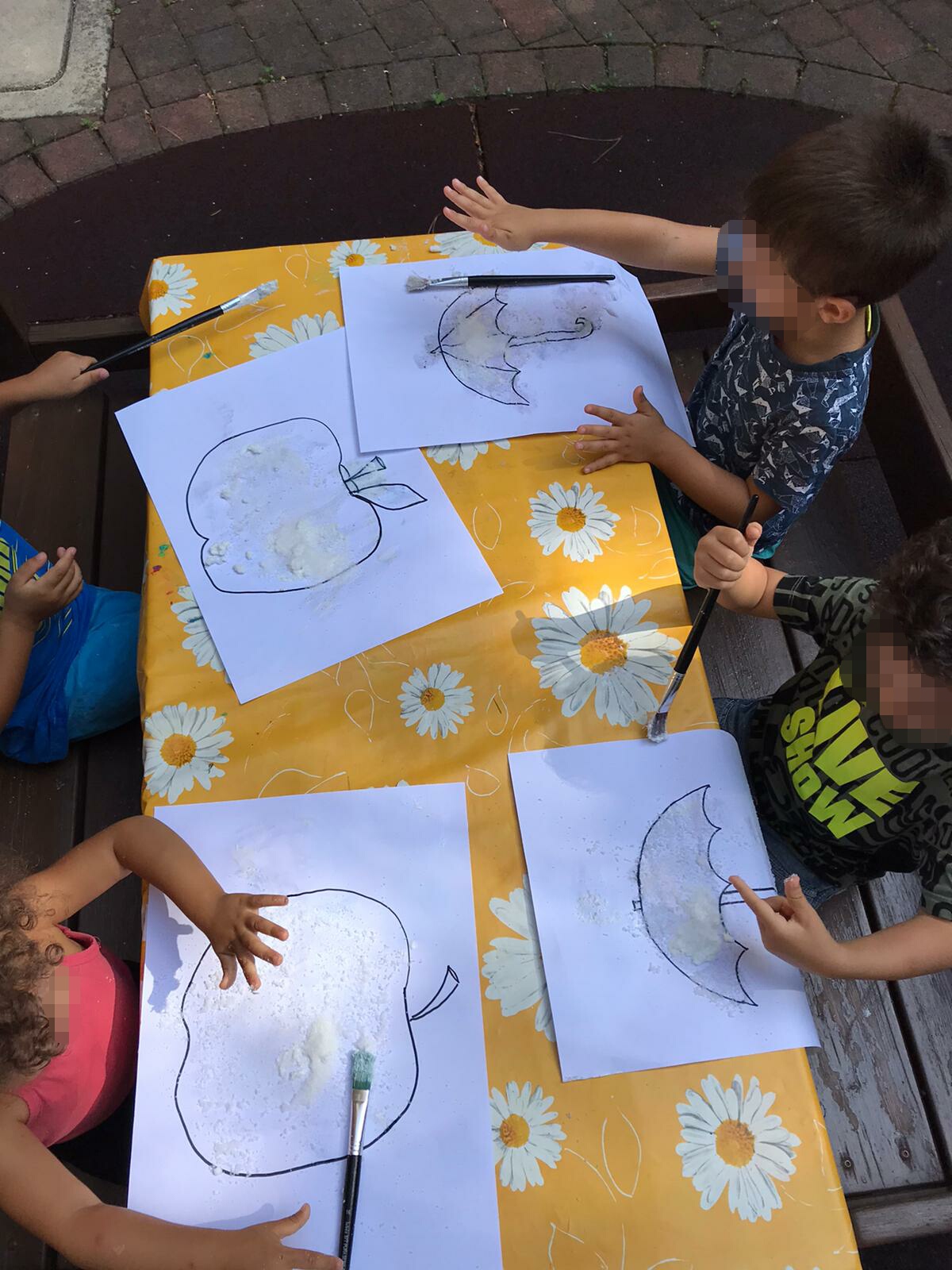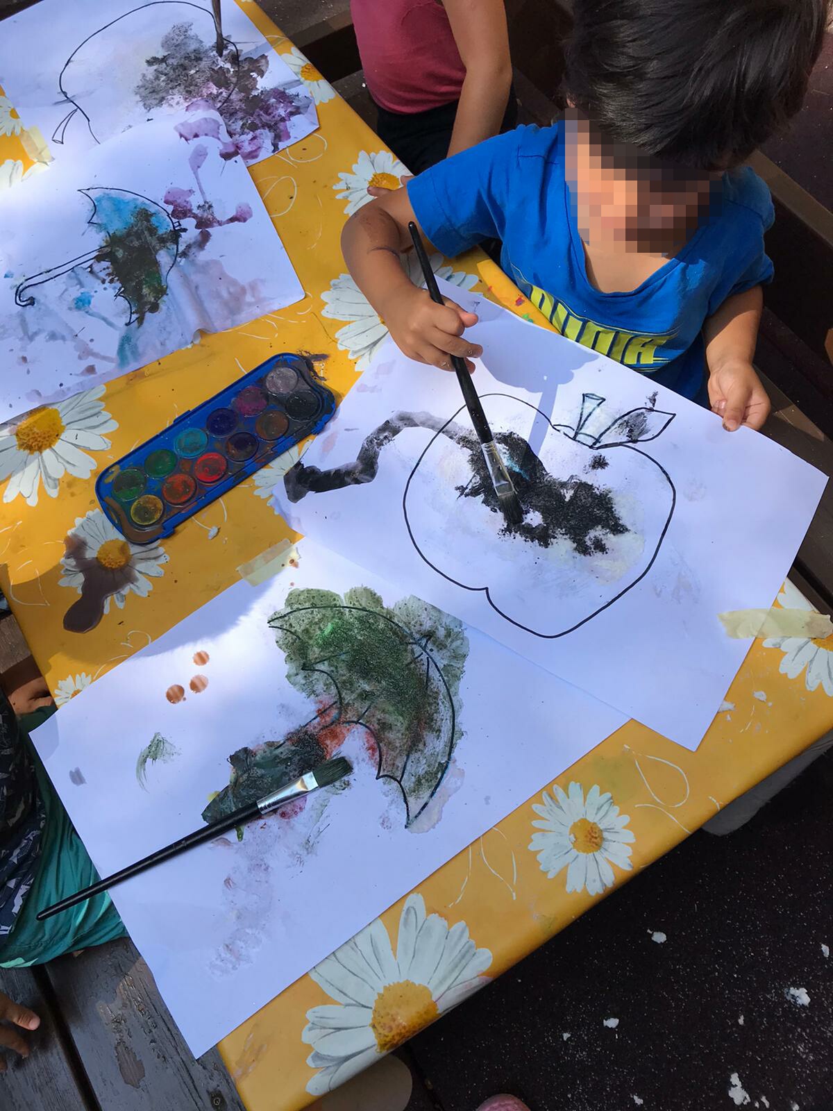 Acquerello su carta. I piccoli artisti del gruppo dei blu ha realizzato dei bellissimi disegni usando gli acquerelli. Che bello vedere tutti questi colori mescolarsi assieme.